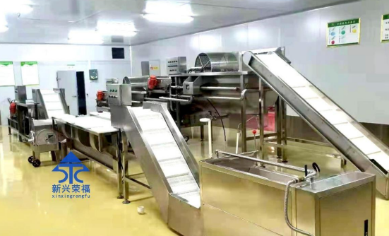 用于根莖菜、葉類菜的清洗加工線,不但可以去除果蔬上殘留的藥液,確保了果蔬的安全;還能防范人工清洗產(chǎn)生遺漏菜品清洗不凈造成的衛(wèi)生問題,保證菜品品質(zhì)。