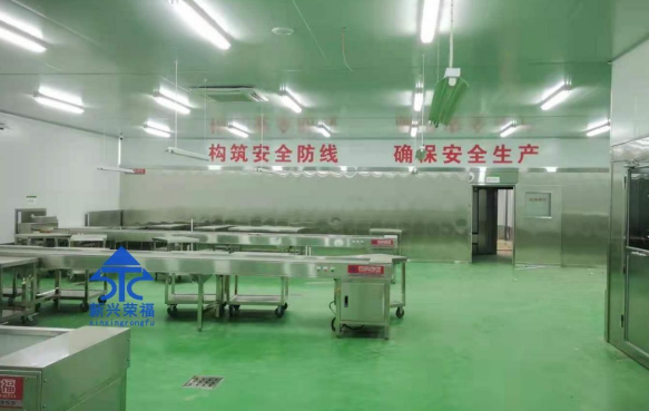 進入分餐凈化間的人員需經(jīng)過兩次風淋室、兩次更衣,車間內(nèi)還安裝了紫外線殺菌,臭氧消毒設(shè)施;配有獨立的凈化空調(diào)空調(diào)確保了學生的入口食物的絕對安全。