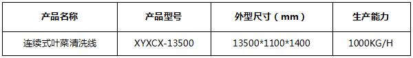 雙工位粗切臺、一臺大型切菜機、一臺提升輸高機、兩臺連續式洗菜機、一臺振動瀝水篩。